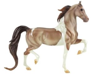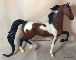 Semigloss bay pinto; cat tracks and mapped markings; star and snip; 4 stockings; striped hooves; Connoisseur SR; 1/350