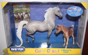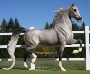 Matte medium grey with resist dappling; 4 socks; snip; JCPenney SR - with American Saddlebred Stallion; Saddlebred Weanling