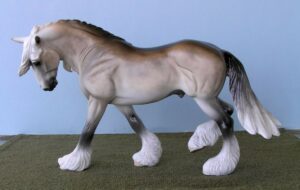 Glossy light shaded grey; dapples; basecoat chalky; 4 socks; BreyerFest SR