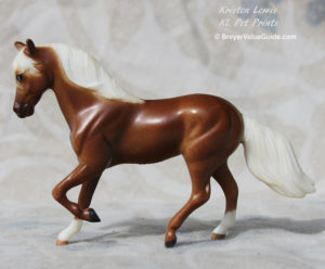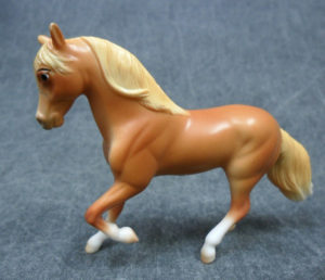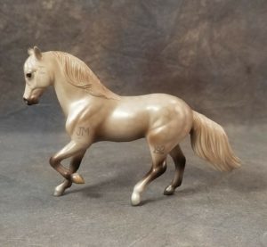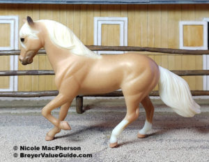 Glossy palomino; speckled roaning; 2 hind socks; BreyerFest SR; 1/3050