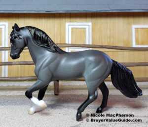 Matte dapple rose grey; resist dapples; blaze; bi-color tail; 2 socks; Hidalgo Collection; Blockbuster release