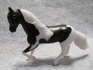 Matte black pinto; blaze; eye whites; 4 high white stockings; JCPenney SR