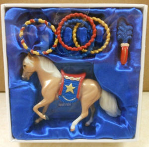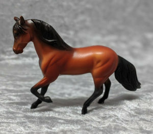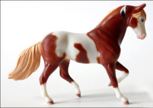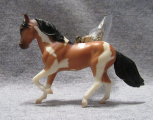 Matte buckskin pinto; bi-color mane and darker tail; natural hooves; with keychain; Toys 'R' Us