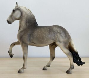 Matte dappled bay; pearly white mane and tail; stripe; 3 low socks; BreyerFest Prize SR; 1/4