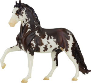 Matte dark liver chestnut pinto, stenciled bald face, white legs, BreyerFest SR, 1/1800