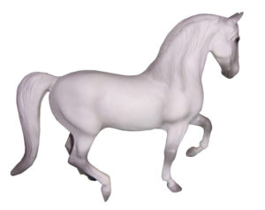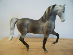 Pearlescent light grey; pink muzzle with grey mottling; multiple brands - with Spanish School tack and doll; 1/5000