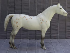 Matte grey blanket appaloosa; fleabites; stenciled spots; striped hooves; bald face; new mane and tail; World Equestrian Games Reissue SR; 1/24