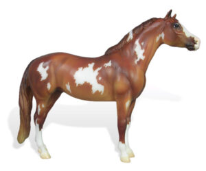 Matte chestnut pinto; wide blaze over muzzle; 4 socks; BreyerFest Prize SR; 1/11