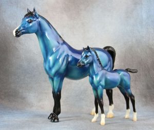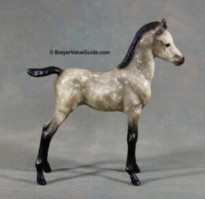 Matte shaded rose grey; resist dapples; black points; stripe; 3 socks; Breyer Tour Raffle SR; 1/26 - with Proud Arabian Stallion.