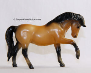 Matte buckskin; black points; some models don't have black legs; socks; grey hooves