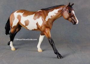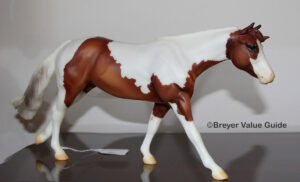Matte chestnut pinto; wide blaze; white legs; shaded tail; BreyerWest SR; 1/300