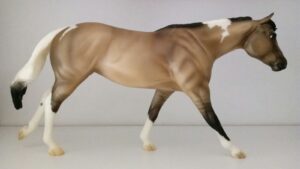 Glossy grulla pinto; stripe; leg barring; bi-color mane and tail; 4 socks; BreyerFest SR; 1/84