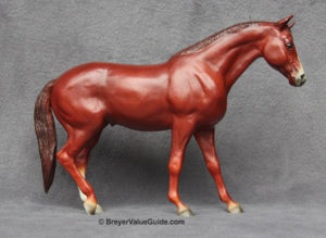 Matte metallic red bay; black points; stripe; snip; 3 socks; BreyerFest SR; 1/500