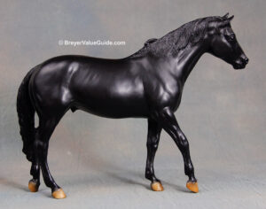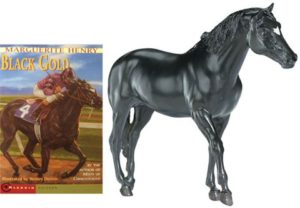 Matte or semigloss black; no white markings; natural hooves; Montgomery Ward SR - with paperback of Marguerite Henry's Black Gold