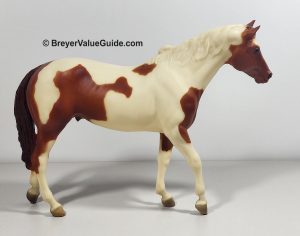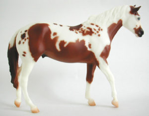Matte chestnut pinto; stenciled bald face; Model Horse Collector's Supply Co SR; 1/1000 - with Mustang