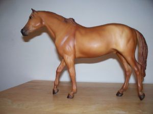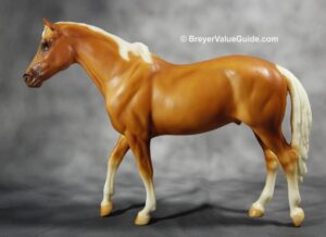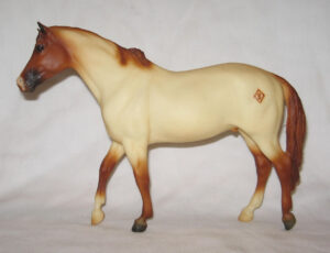 Matte buckskin; cold cast porcelain; bald face; detailed eyes; 1 hind sock; BreyerFest SR; 1/250
