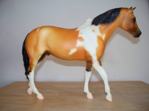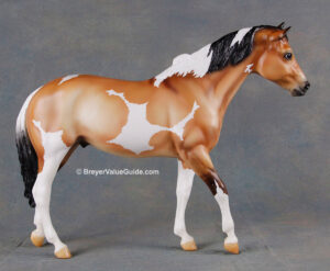 Matte buckskin pinto; mostly white; tricolor eyes; BreyerFest Volunteer Model SR; 1/30