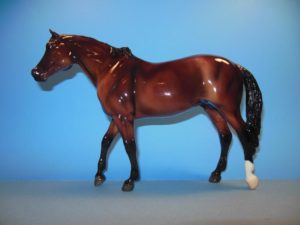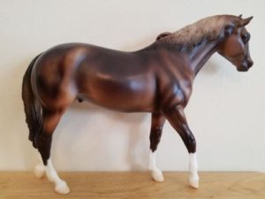 Glossy red chestnut; blaze; 4 socks; BreyerFest Prize SR