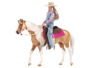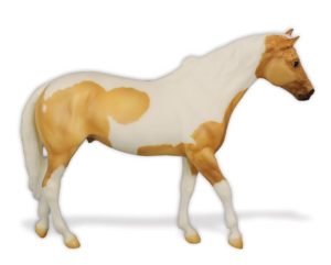 Matte palomino pinto; blaze; 4 high whites; includes doll and tack