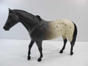 Matte chestnut appaloosa; resist spotting; brand on shoulder; BreyerFest Celebration SR; 1/2200
