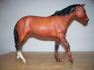 Matte red roan; brand on hip; star; snip; 2 socks; numbered - Toys R Us Showcase Edition