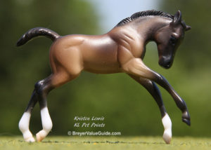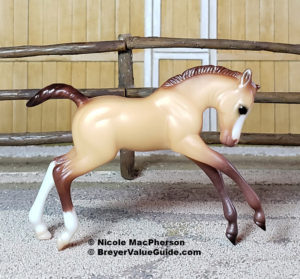 Matte dun; brown points; slight dorsal stripe; wide blaze; 2 hind socks; Target release – with Thoroughbred