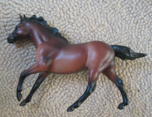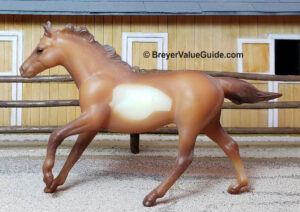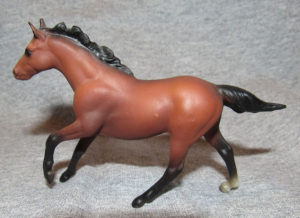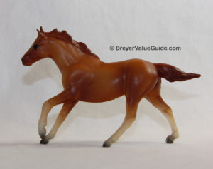 Semigloss dark chestnut; darker mane and tail; 2 hind socks; JCPenney SR