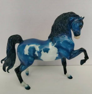 Glossy metallic blue pinto; blaze; 3 socks; Big Easy Bash SR; 1/48