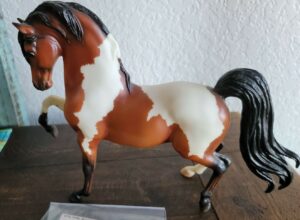 Bay pinto; metallic finish; 1 hind sock; BreyerFest SR; 1/750