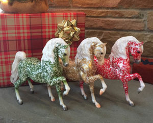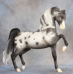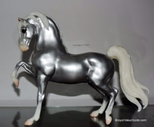 Glossy silver charm; white mane and tail; 4 stockings; BreyerFest SR; 1/25