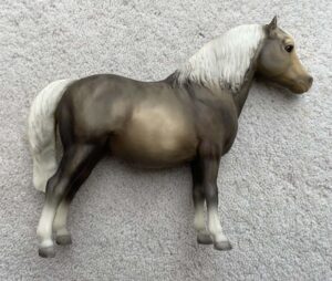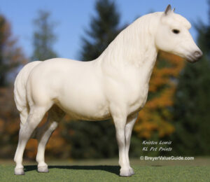 Glossy or matte alabaster; grey mane and tail; pink hooves; earlier models glossy, later models matte