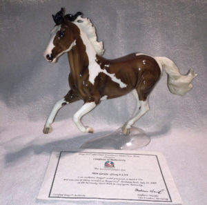 Glossy bay pinto; loose mane; clear base; BreyerFest Prize SR; 1/30