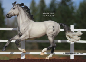 Glossy light grey; fleabites; snip; striped hooves; clear base; BreyerFest Prize SR; 1/30