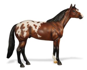 Matte chestnut appaloosa; broken blaze with snip; 1 front sock; flaxen mane and tail; Web SR; 1/500