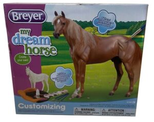 Matte dapple gray with fleabites; haired mane and tail (braided); 3 socks; presentation base; Best in Show Series