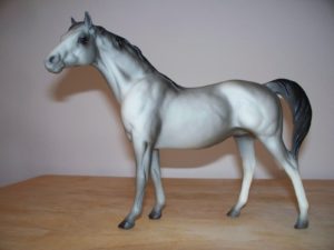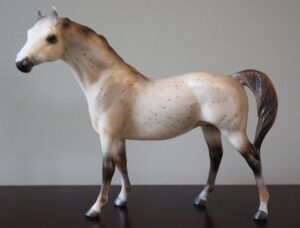 Semigloss peach dun; fleabites; shaded mane; tail and legs; gray hoove; BreyerFest SR; 1/1500 - with Kelso and Man O'War