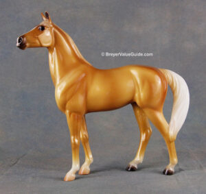 Semigloss metallic palomino; blaze-snip; low socks; front natural hooves; back grey hooves; 2014 Classics Horse of the Year