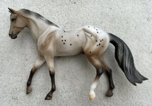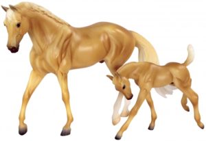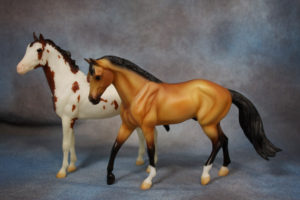 Matte buckskin; star; snip; dark points; 3 socks; BreyerFest SR; 1/1000 - with Duchess