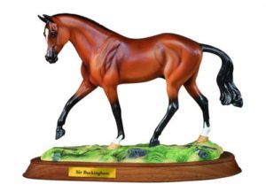 Matte bay; porcelain; blaze; two socks; wood plinth; Breyer's Gallery line