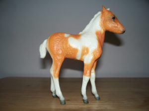 Matte chestnut pinto; crescent-shaped star; 4 stockings; in blister box; same as #19
