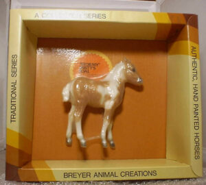 Matte chestnut pinto; crescent-shaped star; 4 stockings; FAO Schwartz SR -with Misty; paperback book and Paul Beebe doll; valued as set