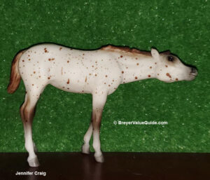 Matte leopard appaloosa; chestnut splash spots; chestnut mane and tail; Sears SR - with Grazing Mare