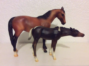 Matte palomino pinto; apron face; JCPenney SR - with Action Stock Horse Foal; Proud Arabian Foal; Running Foal
