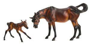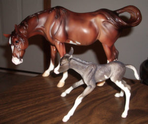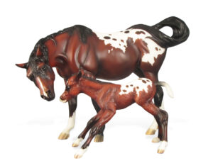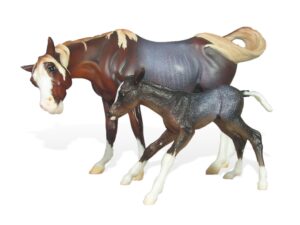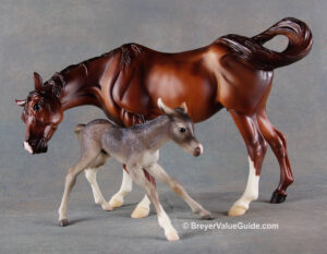 Matte rabicano roan; flaxen mane and tail, wide blaze over muzzle, 4 stockings; BreyerFest Raffle SR; 1/26 - with LeFire