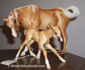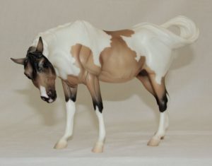 Matte buckskin pinto; low stripe and snip; 4 high whites; set includes Huckleberry Bey and LeFire; JCPenney SR