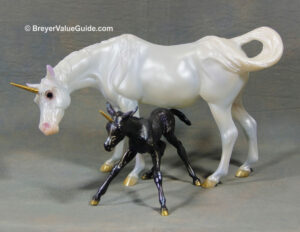 Alcor - Foal, semigloss black with gold, purple, and blue under-shading, gold hooves and horn
