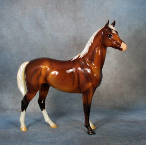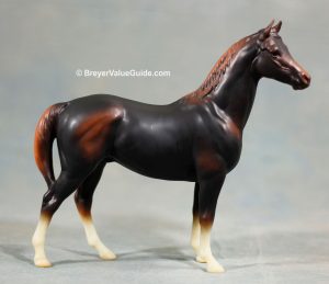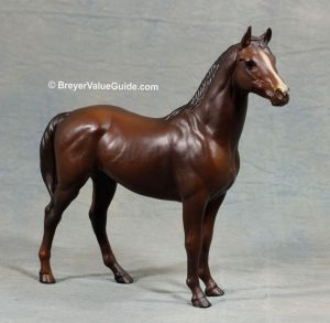 Matte brown; narrow blaze; darker mane and tail; Hobby Centre Toys SR; 1/1000 - with Man O War and Terrang