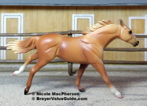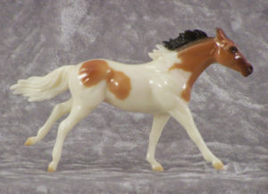 Matte buckskin pinto; stenciled apron face; black mane and tail; black hind legs; 3 socks; BreyerFest SR; 1/1750