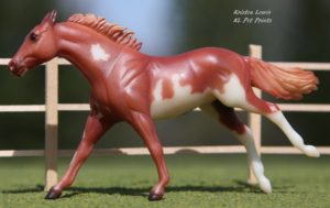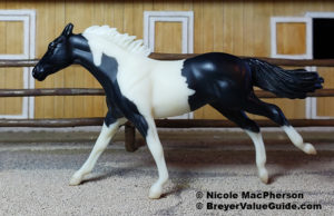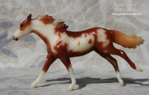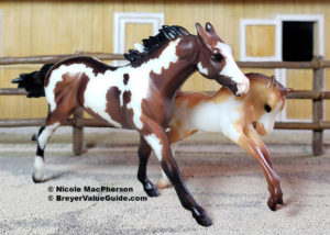 The pinto version was the original release, but was quickly replaced with #720599 solid bay with blaze and socks.