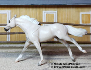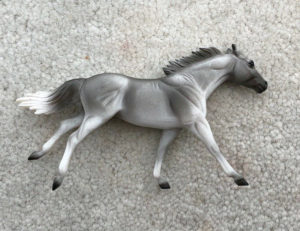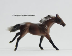 Matte dark shaded grey; blaze; bi-color tail; shaded face and knees; dark grey hooves; JAH SR; 1/5000